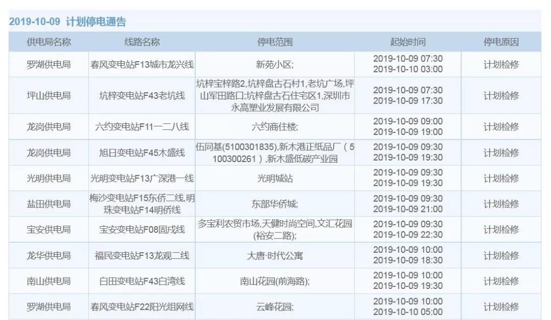 因供電局計(jì)劃?rùn)z修,10月9-10日深圳部分地區(qū)將停電,涉及多個(gè)小區(qū),包括新苑小區(qū)、南山花園、云峰花園等。具體停電信息如下↓↓