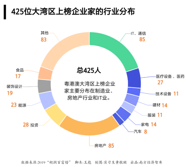 其三,從行業(yè)分布看,制造業(yè)的富豪數(shù)量最多,新興產(chǎn)業(yè)正在涌現(xiàn)新一批大灣區(qū)富豪。