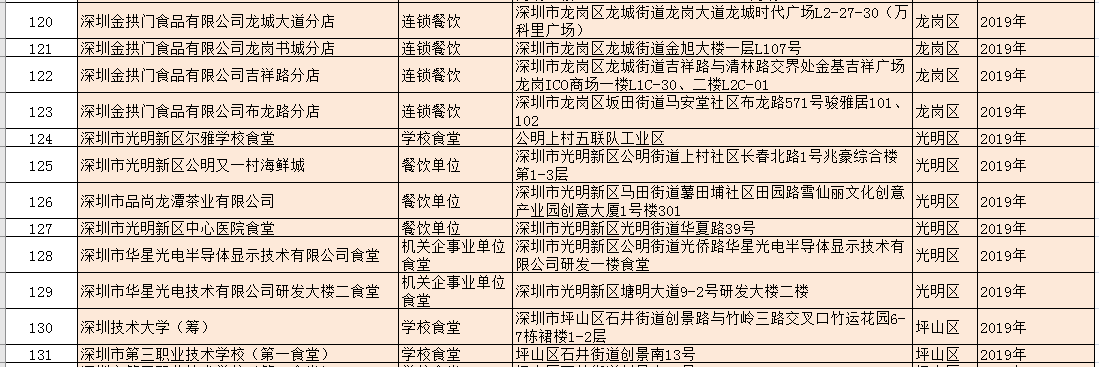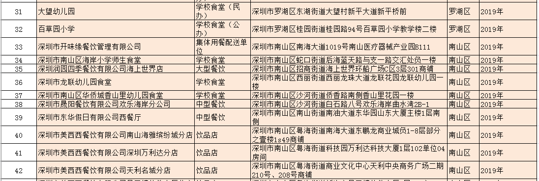 除了新增的A級餐廳外,該局還公布了降級餐廳名單:深圳市龍崗區(qū)龍崗街道培英幼兒園食堂因不符合餐飲服務(wù)食品安全量化等級A級要求予以降級。以及1家變更單位名稱的A級餐飲服務(wù)單位:原名稱為深圳市光明區(qū)培真幼兒園食堂的單位變更名稱為:深圳市光明區(qū)鳳凰街道嘉明幼兒園食堂。