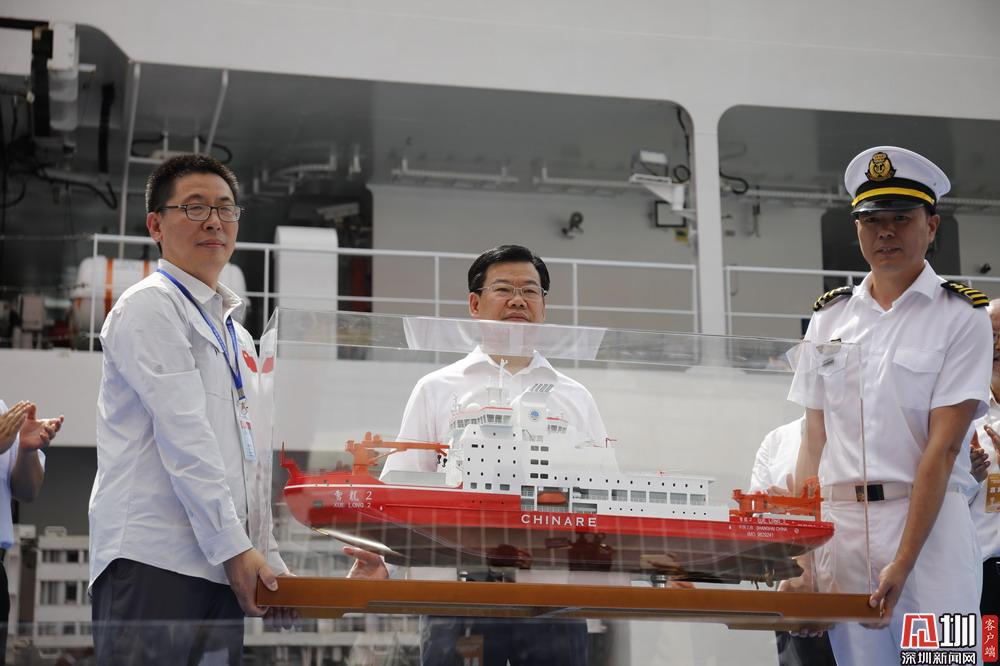 雪龍?zhí)柎L(zhǎng)(右)向深圳贈(zèng)送禮物