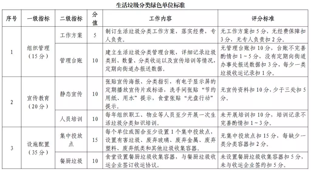 針對單位激勵對象不同,《辦法》還詳細制定了《生活垃圾分類綠色單位標準》《生活垃圾分類綠色學校標準》《生活垃圾分類綠色小區(qū)標準》等要求;針對個人激勵對象,也明確提出了垃圾分類督導員、志愿者、教師和其他從業(yè)人員等不同要求。