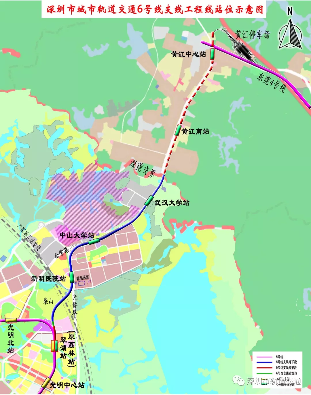 地鐵6號(hào)線(xiàn)支線(xiàn)位于深圳市光明區(qū),線(xiàn)路起點(diǎn)設(shè)置于6號(hào)線(xiàn)翠湖站(不含土建部分)東側(cè),線(xiàn)路終點(diǎn)設(shè)置于公常路深莞邊界東莞黃江鎮(zhèn),共設(shè)3站4區(qū)間。其中翠湖站為6號(hào)線(xiàn)支線(xiàn)與6號(hào)線(xiàn)的換乘站。