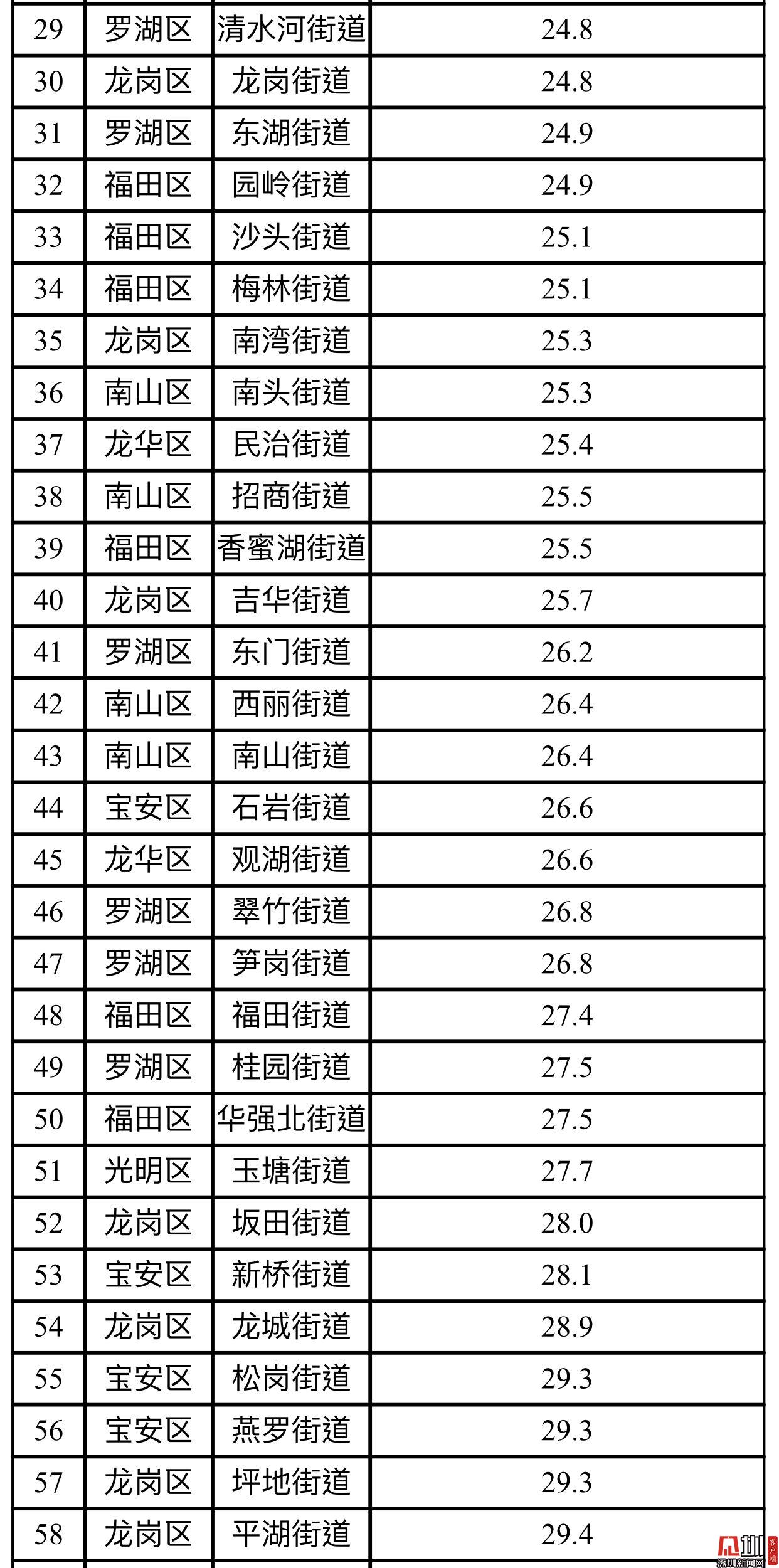 見圳客戶端·深圳新聞網(wǎng)2019年10月22日訊(見圳客戶端、深圳新聞網(wǎng)記者 陳婕)10月22日,記者從深圳市生態(tài)環(huán)境局了解到,2019年9月,全市74個街道PM2.5濃度在17.7-37.4微克/立方米之間,均值為26.1微克/立方米。排名前十的是海山、南澳、梅沙、葵涌、鹽田、馬巒、沙頭角、坪山、坑梓和石井等街道,排名倒數(shù)前十的為新湖、桃源、西鄉(xiāng)、福永、公明、大浪、馬田、觀瀾、福城和新安等街道。