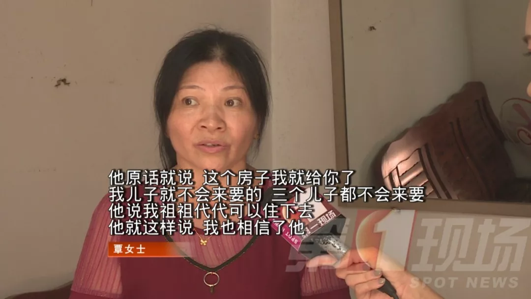 覃女士說,在照顧黃先生期間,相處的挺愉快,只是好景不長,黃先生在一次意外中摔倒,并于2002年離世。覃女士告訴記者,臨終前黃先生為了報(bào)答她的照顧,曾承諾將自己住的房子無條件給覃女士居住。