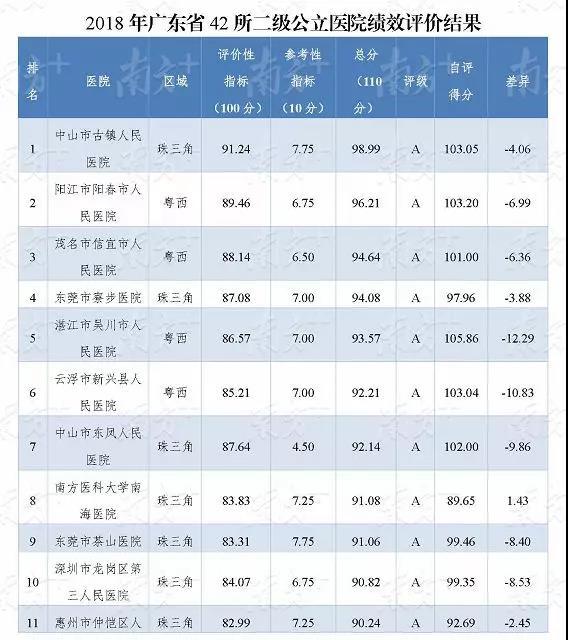 2018年廣東省42所二級公立醫(yī)院績效評價(jià)中包含深圳2家醫(yī)院,其中深圳市龍崗區(qū)第三人民醫(yī)院評級為A,深圳市坪山新區(qū)人民醫(yī)院評級為B。