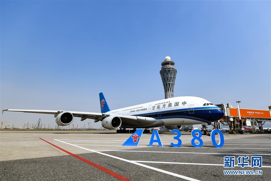 10月27日,南方航空空中客車A380客機停靠在深圳機場。當(dāng)日下午,由全球最大寬體客機——空中客車A380執(zhí)飛的南航CZ3153次航班由深圳起飛前往北京,標(biāo)志著這款“空中巨無霸”機型重返深圳機場。南航曾在2014年5月開始啟用A380執(zhí)飛京深航線,后因動態(tài)運力調(diào)配停飛。新華社記者毛思倩攝