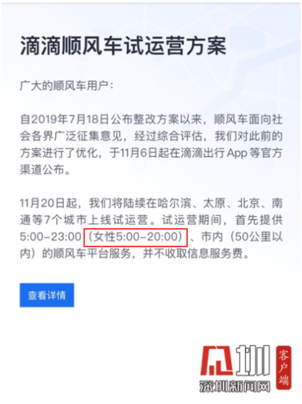 面對爭議,滴滴調(diào)整了:對所有順風(fēng)車用戶提供服務(wù)的時間均改為5:00-20:00