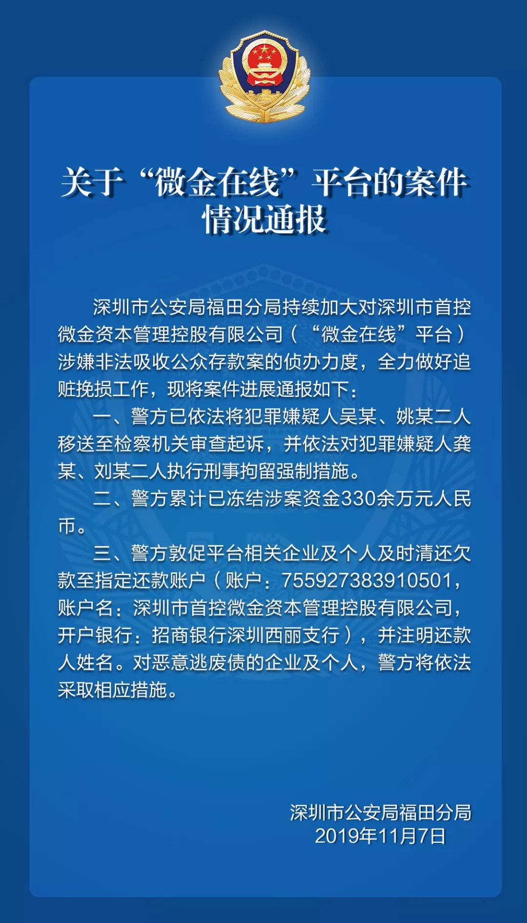 關(guān)于“微金在線”平臺(tái)的案件情況通報(bào)