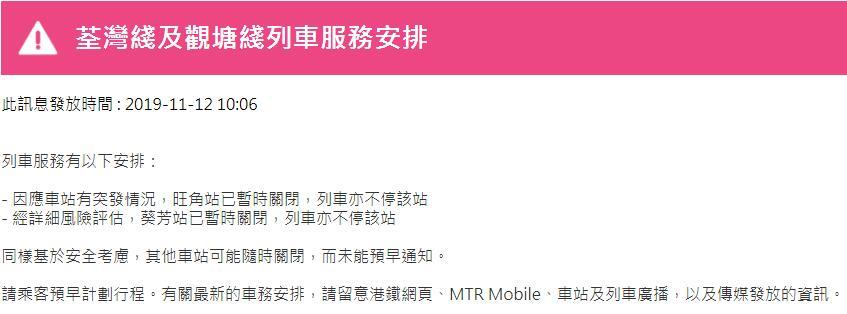 港鐵官網(wǎng)今早陸續(xù)發(fā)布其它線路列車服務調整信息,截至目前各線路情況如下: