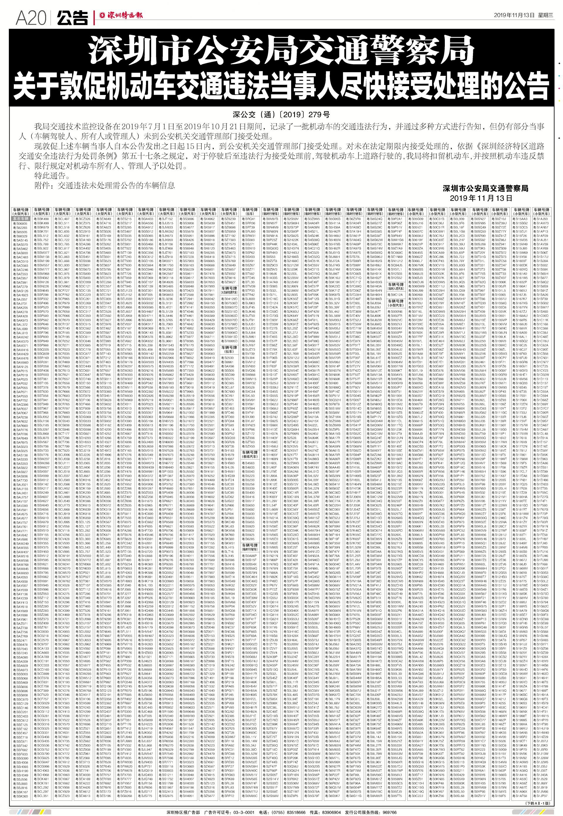 深圳交警已通過手機(jī)短信,郵寄告知等多種方式對(duì)違法車輛車主(車輛駕駛?cè)?、所有人或管理人)進(jìn)行告知送達(dá),但仍有部分車主未及時(shí)接受處理。深圳交警提醒:相關(guān)違法車輛當(dāng)事人應(yīng)盡快處理涉及的交通違法記錄。依據(jù)《深圳經(jīng)濟(jì)特區(qū)道路交通安全違法行為處罰條例》第五十一條之規(guī)定,對(duì)通知停駛后至違法行為接受處理前,駕駛機(jī)動(dòng)車上道路行駛的,交警部門將扣留機(jī)動(dòng)車,并按照機(jī)動(dòng)車違反禁行、限行規(guī)定對(duì)機(jī)動(dòng)車所有人、管理人予以處罰。