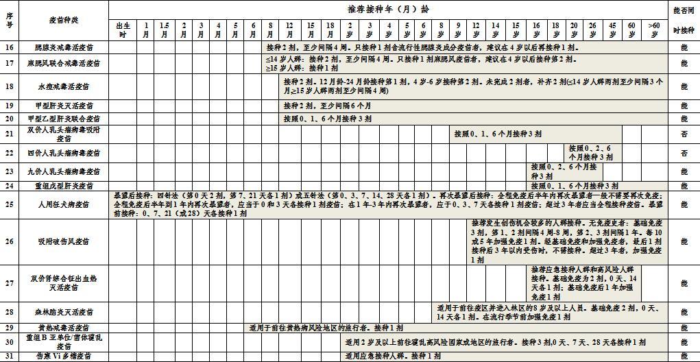 廣東省非免疫規(guī)劃疫苗接種方案一覽表↓