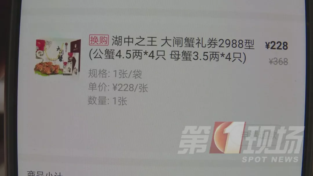 今年9月份,張先生在盒馬鮮生APP上,花228元購(gòu)買了一張大閘蟹禮券,禮券上清楚寫明,可以兌換4只225克的公蟹,和4只175克的母蟹。