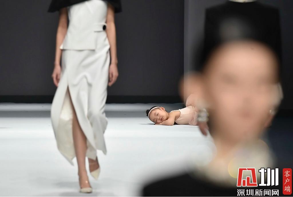 2019年3月15日,深圳時(shí)裝周,一位在T臺(tái)上睡著的小女孩。