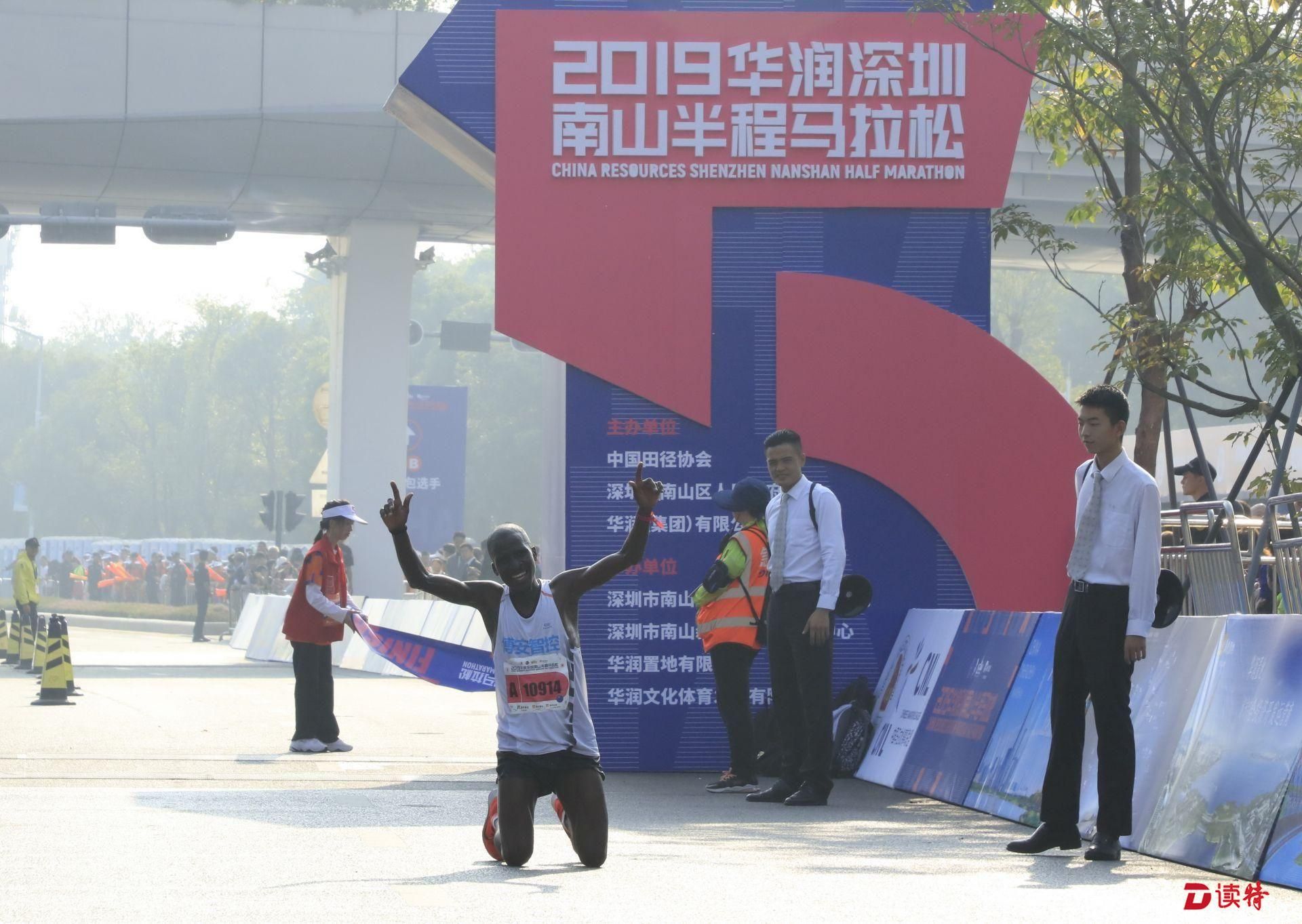 8點鳴槍,1.6萬名參賽選手準時開跑,由深圳人才公園東門出發(fā),途徑南山區(qū)多個地標建筑,向終點華潤深圳灣體育中心奔跑。經(jīng)過一番激烈的角逐,9點過,有選手率先抵達終點,男女組冠亞季軍陸續(xù)誕生。