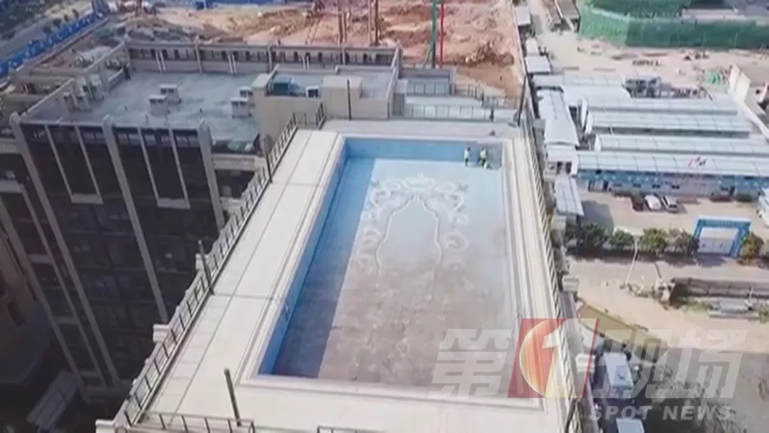 原本應(yīng)該是水泥平臺(tái)的樓頂,現(xiàn)在卻顯示為藍(lán)色花紋影像,發(fā)現(xiàn)這個(gè)情況后,坪山區(qū)規(guī)劃土地監(jiān)察局立即組織工作人員進(jìn)行核查。結(jié)果發(fā)現(xiàn),是在樓房經(jīng)過(guò)規(guī)劃驗(yàn)收后,開發(fā)商偷偷建設(shè)了一處游泳池。
