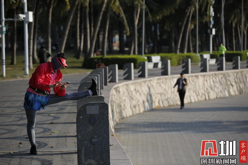 早晨7點(diǎn),深圳灣公園,一位晨練的市民。