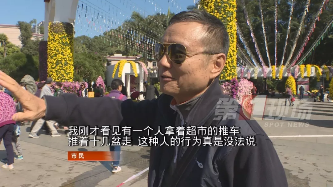市民說,現(xiàn)場沒有人引導,弄得場面如同哄搶,殘花敗葉滿地,實在太不雅觀,有損形象,甚至有人推了一輛超市的推車,一下搬走了10多盆。