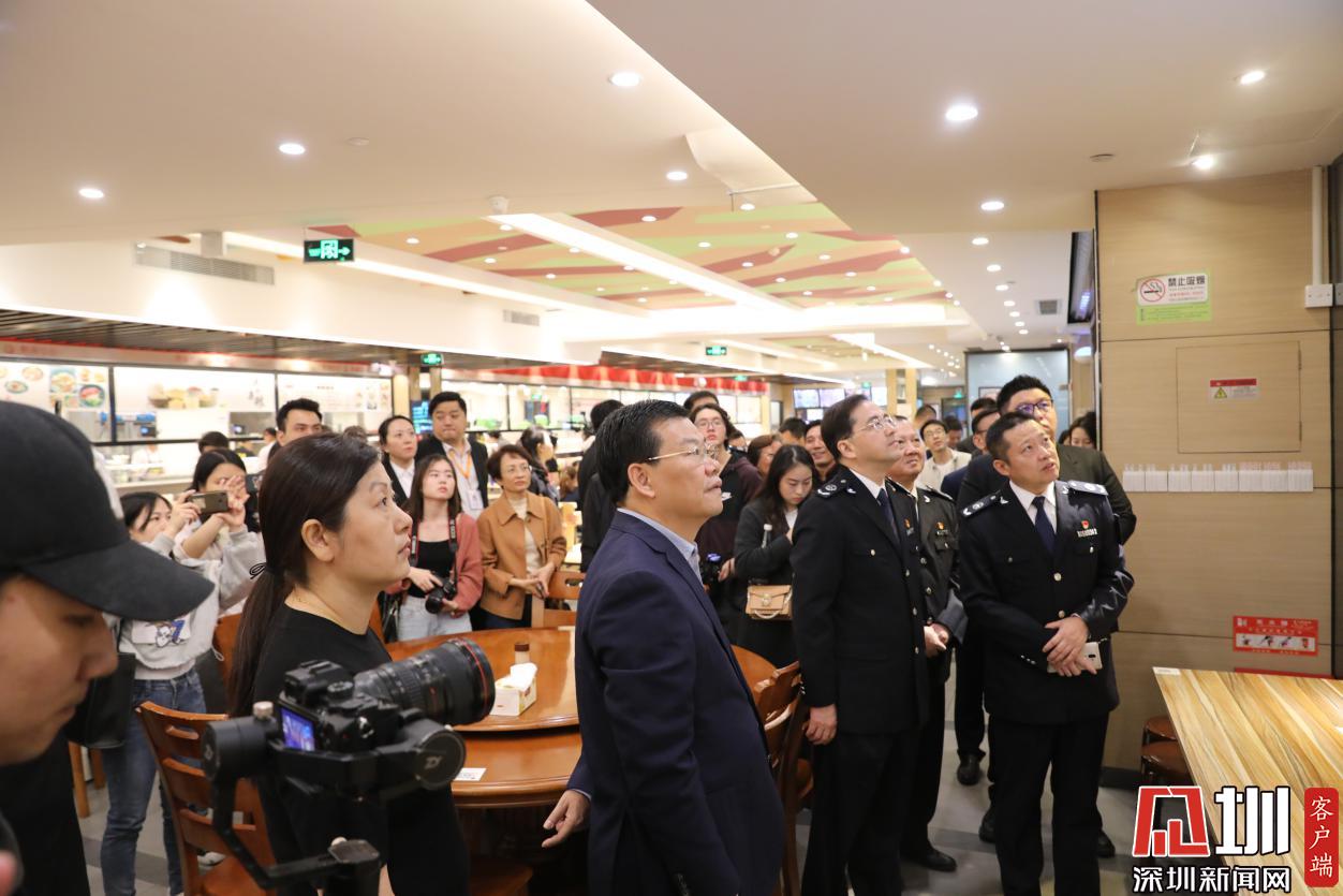 隨后,與會(huì)領(lǐng)導(dǎo)共同為羅湖水貝熟食中心揭牌,并一同參觀了熟食中心。在參觀、體驗(yàn)熟食中心過(guò)程中,黃敏副市長(zhǎng)對(duì)羅湖區(qū)委區(qū)政府高位推動(dòng)、深入貫徹落實(shí)食品安全戰(zhàn)略工作表示肯定,希望羅湖區(qū)進(jìn)一步擴(kuò)大熟食中心宣傳,采取增加二維碼張貼率、完善路線指引等方式,讓民生工程惠及更多市民;并不斷加強(qiáng)食品安全管理水平,可引入“圳品”提升餐飲服務(wù)質(zhì)量,切實(shí)提高消費(fèi)者在熟食中心用餐的獲得感和幸福感。