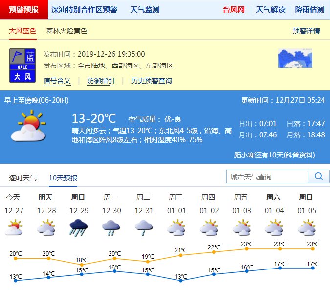 見圳客戶端·深圳新聞網(wǎng)2019年12月27日訊 昨日下午冷空氣已經(jīng)開始逐漸影響我市,風(fēng)力有所加大,沿海高地最大陣風(fēng)已達(dá)到6-7級(jí)。市氣象臺(tái)預(yù)測,受冷空氣+臺(tái)風(fēng)聯(lián)合影響,29-30日我市將有一次大雨到暴雨降水過程。