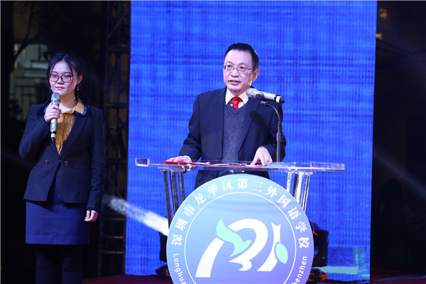 在晚會(huì)正式開(kāi)始之前,聶細(xì)剛校長(zhǎng)在致辭中提到,深圳市龍華區(qū)第三外國(guó)語(yǔ)學(xué)校是一所致力于植根中國(guó)、面向世界的外國(guó)語(yǔ)品牌學(xué)校,培養(yǎng)具有中國(guó)精神、世界情懷的國(guó)際公民。同時(shí),在借力于孔子學(xué)院、立足打造書(shū)香校園、弘揚(yáng)中華民族優(yōu)秀傳統(tǒng)文化基礎(chǔ)上,借力于北京外國(guó)語(yǔ)大學(xué)、北京師范大學(xué),在全力推進(jìn)英語(yǔ)雙師云課堂。同時(shí),開(kāi)設(shè)了俄語(yǔ)、法語(yǔ)、韓語(yǔ)等小語(yǔ)種選修課,未來(lái)還將開(kāi)設(shè)日語(yǔ)、德語(yǔ)、西班牙語(yǔ)等小語(yǔ)種,凸顯外國(guó)語(yǔ)特色品牌。學(xué)校成為全國(guó)美育名校聯(lián)盟學(xué)校,北京師范大學(xué)項(xiàng)目實(shí)驗(yàn)學(xué)校,北京外國(guó)語(yǔ)大學(xué)課題實(shí)驗(yàn)基地,泰國(guó)曼松德大學(xué)孔子學(xué)院漢語(yǔ)教學(xué)交流基地等;吸引了一大批來(lái)自清華大學(xué)、北京大學(xué)、北京師范大學(xué)、愛(ài)丁堡大學(xué)、曼徹斯特大學(xué)、西班牙武康大學(xué)等國(guó)內(nèi)外知名高校的優(yōu)秀人才加盟。學(xué)生舞蹈團(tuán)首次登上2020年廣東省少兒春晚的舞臺(tái)。在第五屆深圳教育改革創(chuàng)新大獎(jiǎng)評(píng)比活動(dòng)中,榮獲“2019年度家校共育典范學(xué)校”。