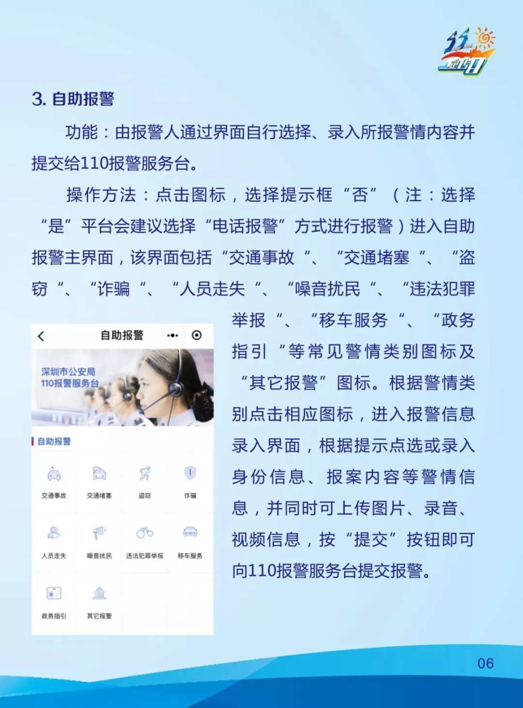 “廣東110”除了報(bào)警功能,還將上線新功能!“110宣傳日”當(dāng)天,“廣東110”報(bào)警小程序的交通事故快處快賠功能上線。還可了解到深圳交警星級(jí)用戶輕微事故遠(yuǎn)程處理系統(tǒng)相關(guān)資訊,現(xiàn)場教您輕松掌握交通事故快處快賠辦法。