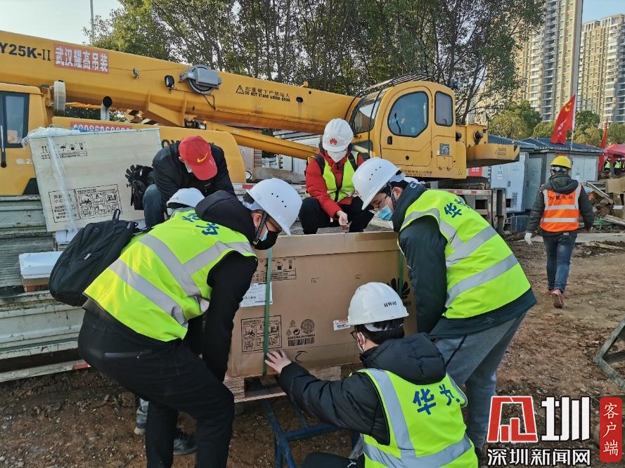 1月31日下午,華為網(wǎng)絡(luò)、視頻會議等設(shè)備緊急運(yùn)輸進(jìn)場,準(zhǔn)備施工調(diào)測 。 (華為供圖)