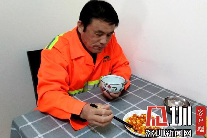 胡蘿卜丁炒玉米,再加一碟土豆絲下飯,這就是黃學(xué)志的午餐。黃學(xué)志說(shuō),他有幾年沒(méi)回老家了,本來(lái)計(jì)劃春節(jié)回去過(guò)年,順便帶老伴看病,沒(méi)想到疫情越來(lái)越嚴(yán)重,于是就打消了這個(gè)念頭。疫情發(fā)生以來(lái),除了日常工作,他還要負(fù)責(zé)為值班同事普及疫情防控知識(shí)的任務(wù)。從早上7點(diǎn)半到12點(diǎn)半,下午1點(diǎn)半到5點(diǎn)半,他每天在沙頭角7個(gè)垃圾轉(zhuǎn)運(yùn)站、18個(gè)公廁來(lái)回奔走,給同事配送口罩及消毒用品,檢查他們的身體健康情況?!艾F(xiàn)在是疫情防控關(guān)鍵期,我們也希望為防控工作貢獻(xiàn)出來(lái)自環(huán)衛(wèi)清潔行業(yè)的一份力量。”黃學(xué)志說(shuō)。(見(jiàn)圳客戶端、深圳新聞網(wǎng)記者鄧雪婷)