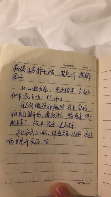 20:00交接班,順利完成……走出病房21:45,伴著小雨,我們離開醫(yī)院。