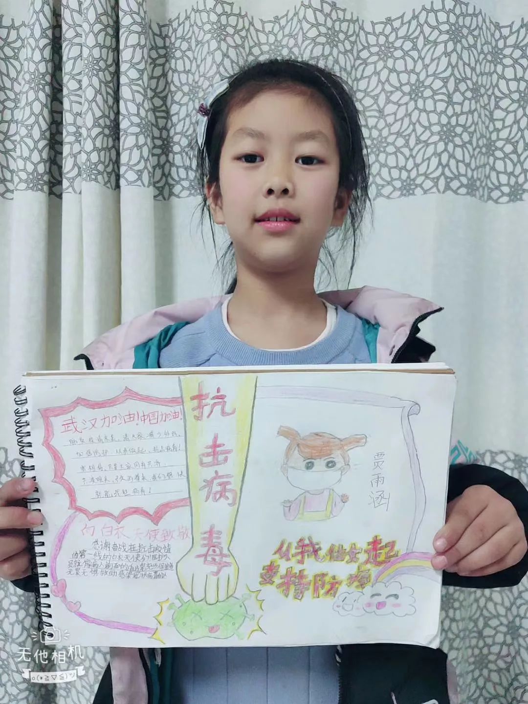 我知道了,爸爸。你出門,是要讓更多的人安心呆在家里,不給社會添亂。這么說來,我的爸爸就像保衛(wèi)城市的騎士,每天都在英勇地戰(zhàn)斗?!笔∏G州市泗場中心小學(xué)賈雨涵