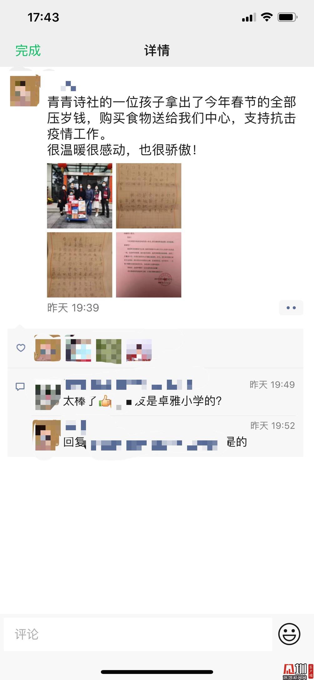見圳客戶端·深圳新聞網(wǎng)訊(記者王志明 通訊員 田銀鳳 黃佳儀)新冠病毒,徒有花冠綻放的外表,卻不是報(bào)春的青鳥。它的不請自到,帶來的是無盡的眼淚和傷害,更有全民的抵抗。每一股渺小的力量,每一個(gè)善意的舉動(dòng),每一份微弱的馳援,都是一束跳動(dòng)的火苗,匯聚一起,能消融病毒冰冷的觸角,能斬?cái)嗖《惊b獰的手腳,終將為我們吹響全民戰(zhàn)“疫”的勝利號角。