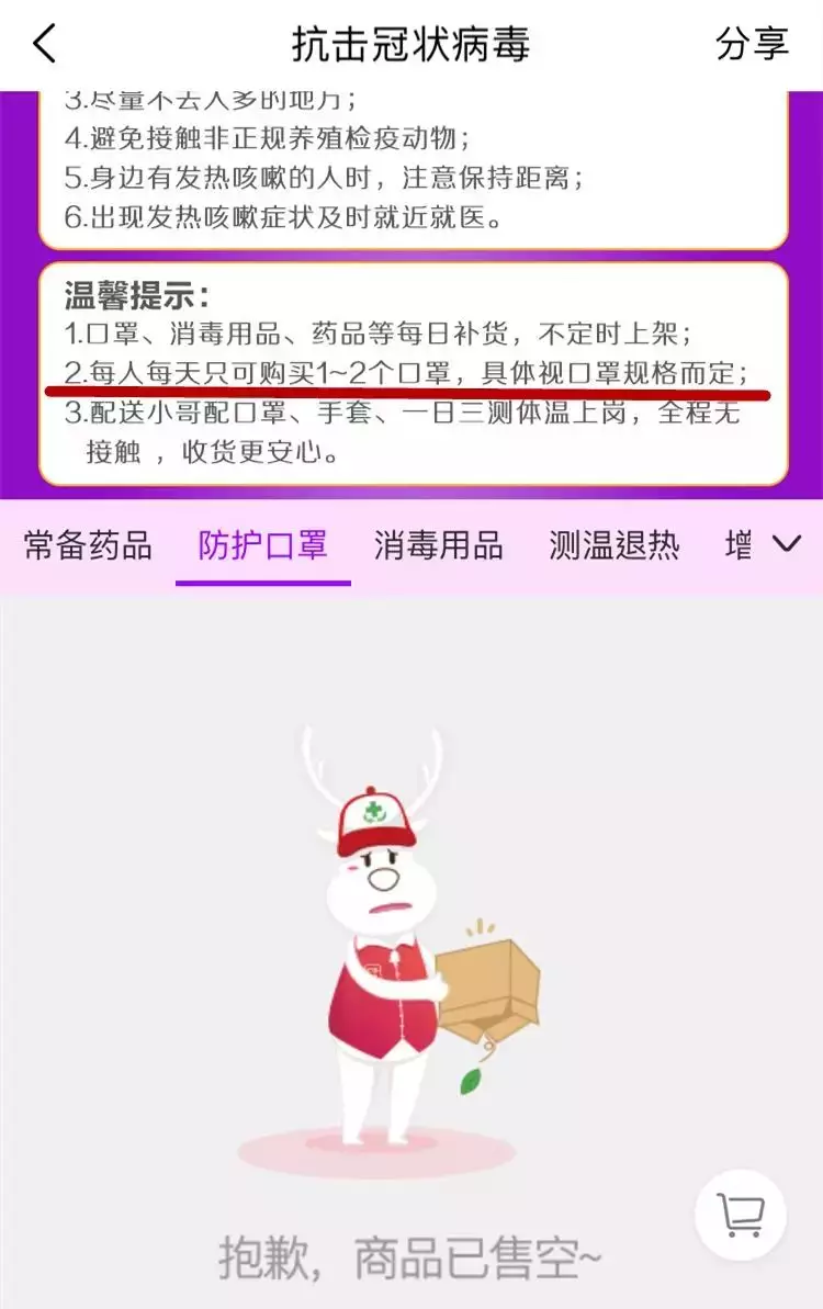 記者了解到,叮當(dāng)快藥全程采取線上下單、線下無接觸配送的模式。化經(jīng)理進(jìn)一步解釋道,為了保障消費(fèi)者與員工安全,配送員會(huì)全程佩戴護(hù)目鏡、頭盔、手套及口罩,送到門衛(wèi)或者小區(qū)樓下,讓消費(fèi)者自取。所以小編提醒,為了安全,大家千萬不要去門店排隊(duì)購買哦!接下來叮當(dāng)快藥從海外:美國、韓國、俄羅斯等地購買的口罩還會(huì)陸續(xù)到貨及上線。