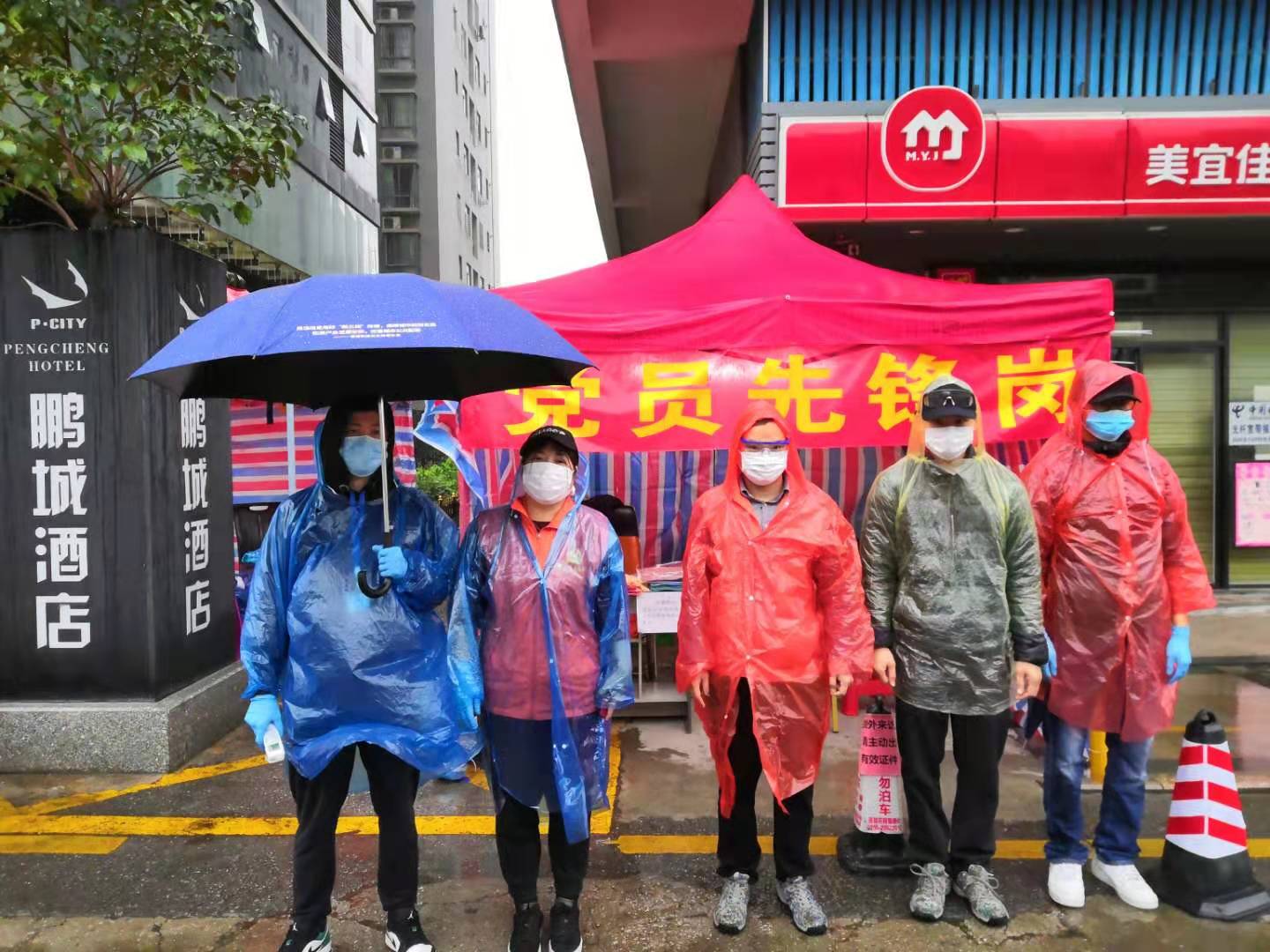在龍華區(qū)福城街道茜坑社區(qū)的黨員先鋒崗上,工作人員和志愿者只有一襲最簡(jiǎn)單的一次性雨衣,卻依然堅(jiān)守在崗位上。(見(jiàn)圳客戶(hù)端、深圳新聞網(wǎng)記者沈婷)
