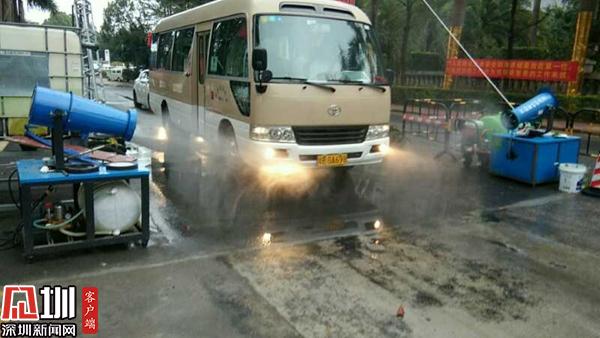 園區(qū)在車輛入口處嚴(yán)格對(duì)每一輛車進(jìn)行消毒處理。