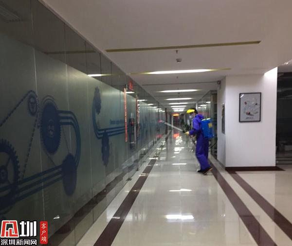 工作人員正在對(duì)園區(qū)進(jìn)行全面消殺。