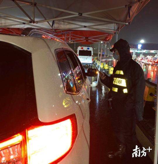 寶安區(qū)羅田檢疫站指揮部總指揮,石巖街道黨工委副書記、人大工委主任鄧亞虎,石巖街道副主任林志明和羅田交通聯(lián)合檢疫站臨時黨支部黨員冒雨檢查。當(dāng)晚,深圳市公安局經(jīng)偵支隊支援4名民警在現(xiàn)場冒雨防疫檢查。