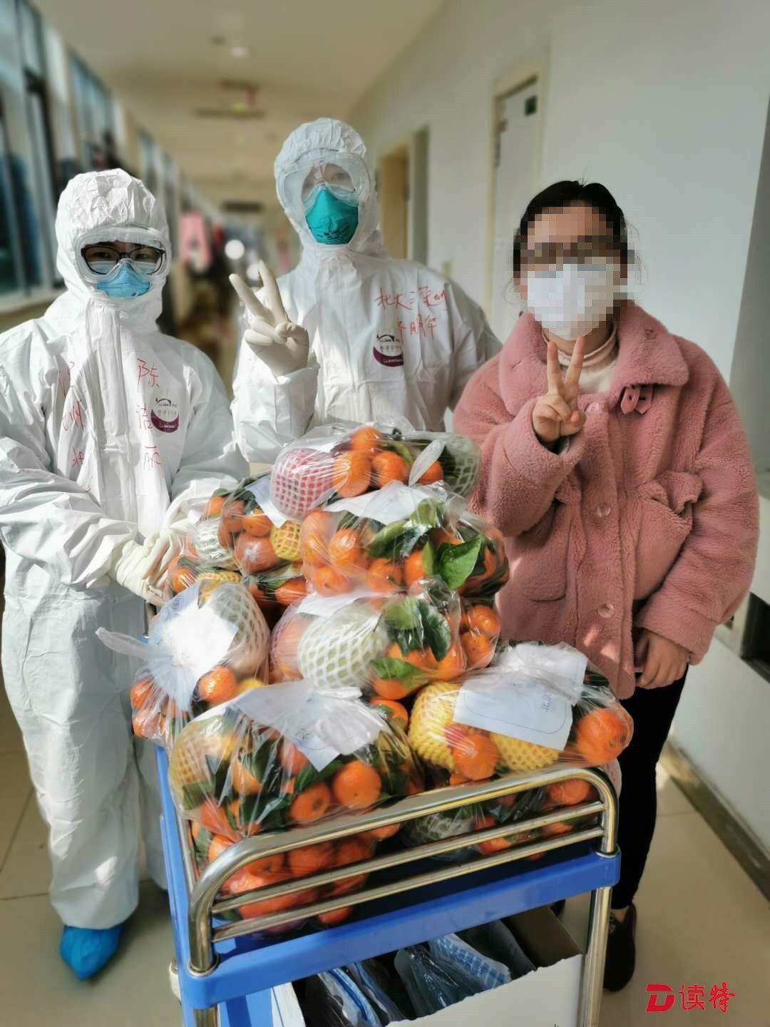 深圳醫(yī)療隊(duì)員為患者發(fā)放沙糖桔與蘋果。水果也是從廣東遠(yuǎn)道而來,是廣東愛心人士捐給深圳醫(yī)療隊(duì)的,隊(duì)員們分享給患者朋友。