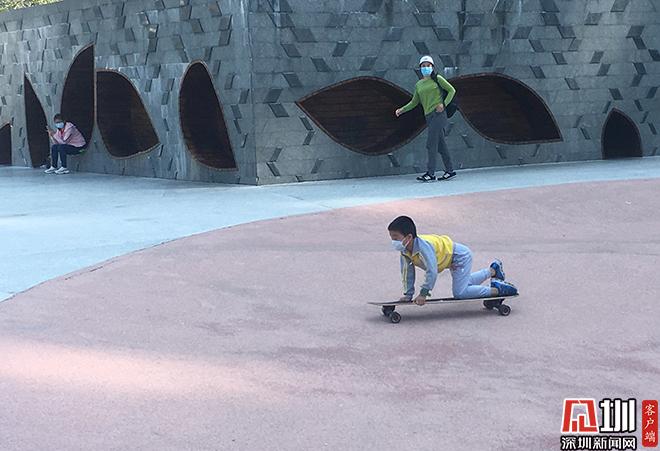 鹽田中央公園是鹽田區(qū)的地標(biāo)之一,內(nèi)有滑板山丘、游樂(lè)廣場(chǎng)、活動(dòng)草坪、主題雕塑和弧形棕櫚大道等游樂(lè)場(chǎng)所。在公園里,記者發(fā)現(xiàn),園內(nèi)的廣播循環(huán)播送疫情通知、防護(hù)措施等信息,呼吁游人勤洗手、戴口罩、不聚集……進(jìn)入公園游玩的市民均自覺(jué)佩戴口罩,十分默契地分散開(kāi)來(lái),在空曠的地方席地而坐,并自覺(jué)保持一定的安全距離?!扒岸螘r(shí)間一直在家里宅著,連小區(qū)門(mén)都不出。今天出來(lái)透透氣,順便運(yùn)動(dòng)一下?!贝髦谡值膭⑾壬龓е⒆釉陉帥鱿滦蓓?,旁邊擺放了兩輛自行車(chē)。他說(shuō),這個(gè)時(shí)候出來(lái)呼吸下新鮮空氣,活動(dòng)下筋骨,十分愜意。“但是,現(xiàn)在還沒(méi)到放松的時(shí)候,口罩肯定是要戴的,人太多、封閉的地方不建議去,還是要時(shí)刻保持警惕?!?/p>