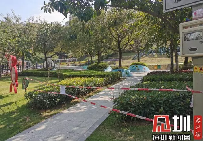 在光明區(qū)新城公園,記者看到公園里游樂(lè)設(shè)施區(qū)域已被封,暫未對(duì)外開放。道路兩旁的小喇叭正播放著防疫宣傳廣播,提醒市民出門戴好口罩,勤洗手,注意防護(hù)。