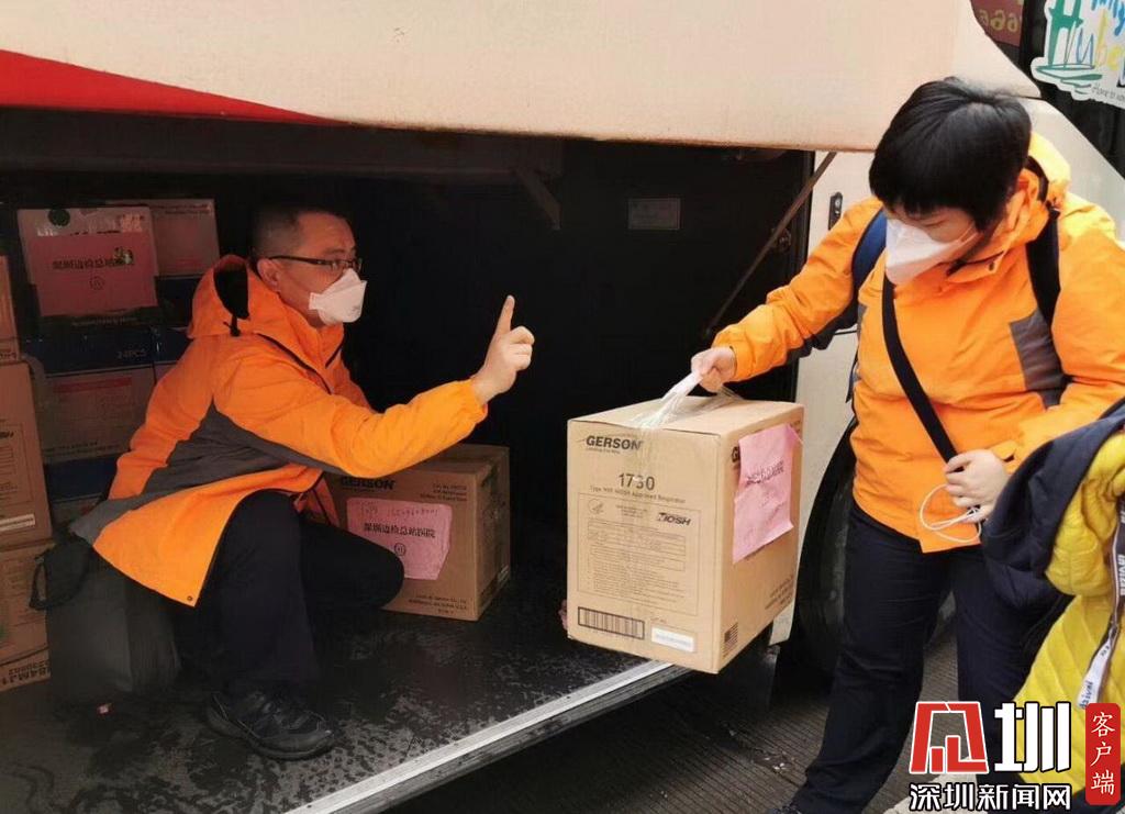 抵達(dá)荊州后,醫(yī)療隊人員在搬運物資