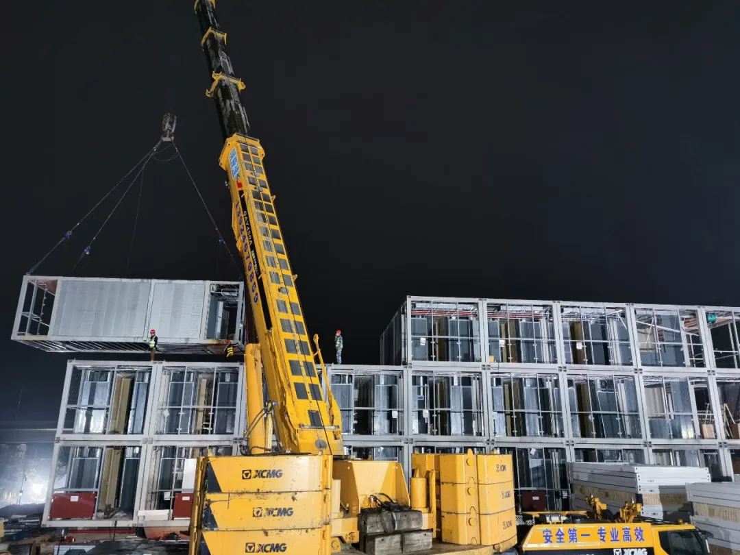 24小時(shí)完成所有模塊吊裝 醫(yī)護(hù)公寓封頂