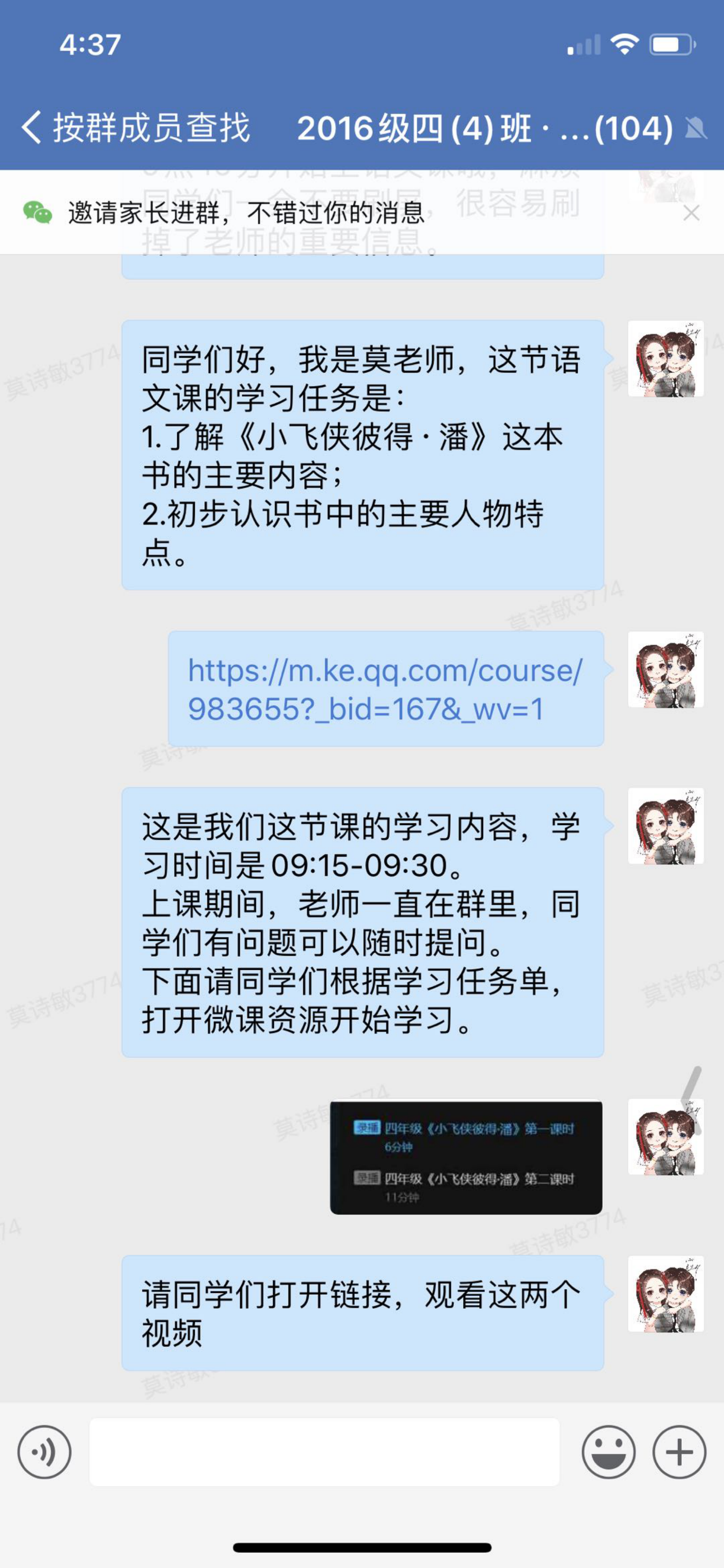 上課前,莫詩(shī)敏會(huì)在班級(jí)群里發(fā)學(xué)習(xí)任務(wù)單。