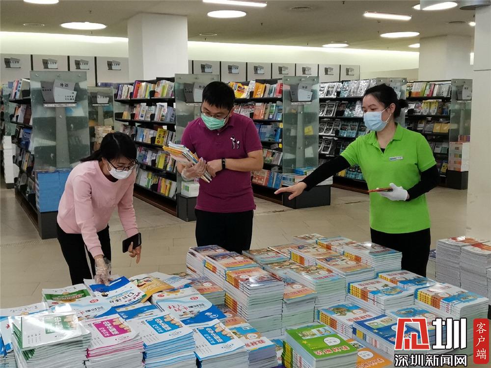 中心書城:教材區(qū)人氣比較高,幾名顧客正在進行挑選。