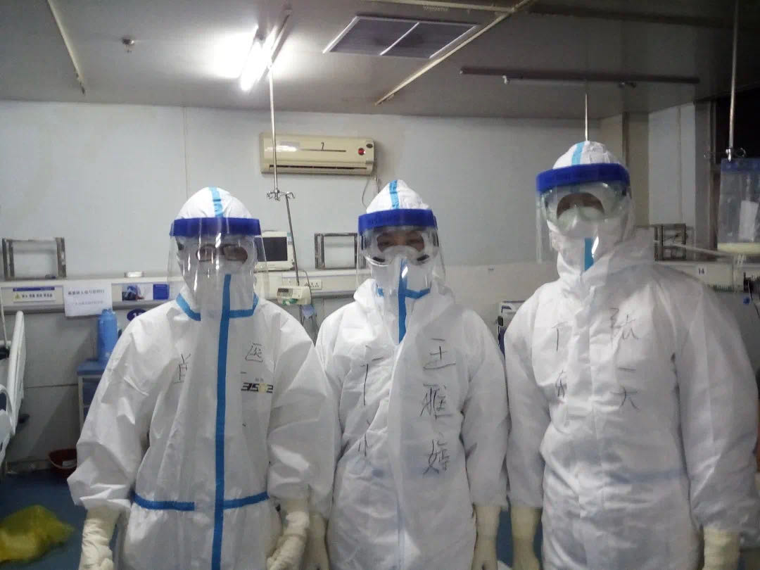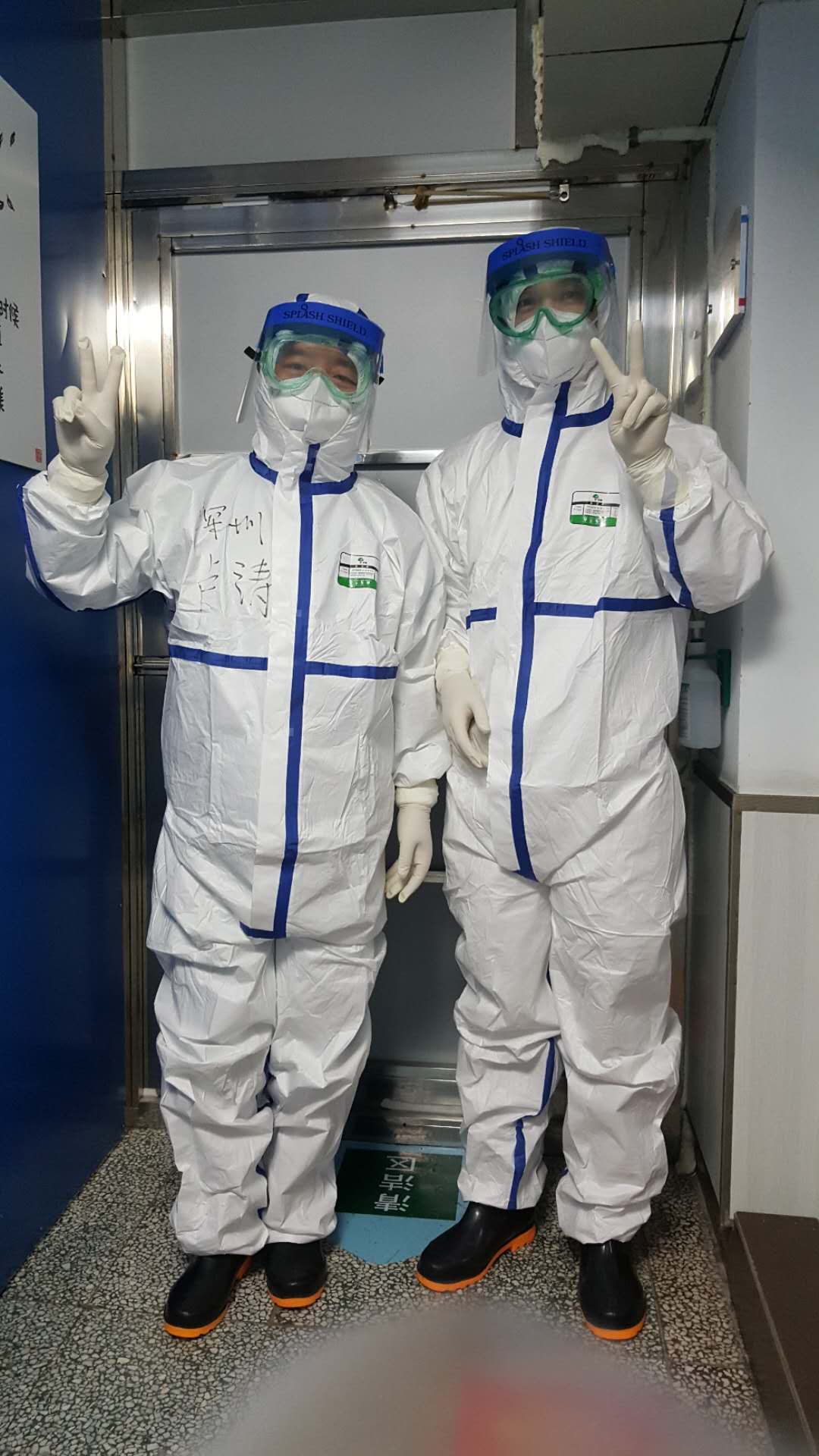 剛開始,我小心地保持著與患者的距離,一個(gè)、兩個(gè)、三個(gè)……隨著接觸的患者增加,我慢慢也放松了,開始進(jìn)入狀態(tài)。在病房?jī)?nèi),我詢問(wèn)病人情況,解釋病情,提醒住院醫(yī)師做好查房記錄,探討用藥情況,傳達(dá)鐘南山院士的最新診療方案、第六版治療指南……終于找到支援隊(duì)專家的感覺(jué)了。憋氣、悶熱,似乎都來(lái)不及體會(huì),突然后背一涼,怎么有水滴下來(lái)了?難道是防護(hù)衣破了?心頭一緊,再仔細(xì)感覺(jué),原來(lái)是汗水在里面流淌,虛驚一場(chǎng)。