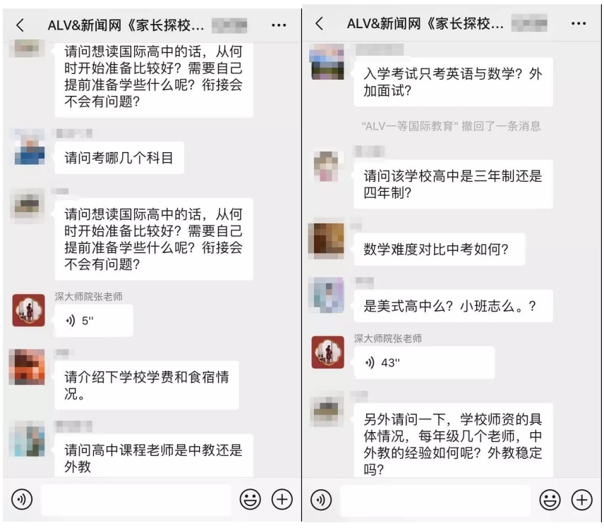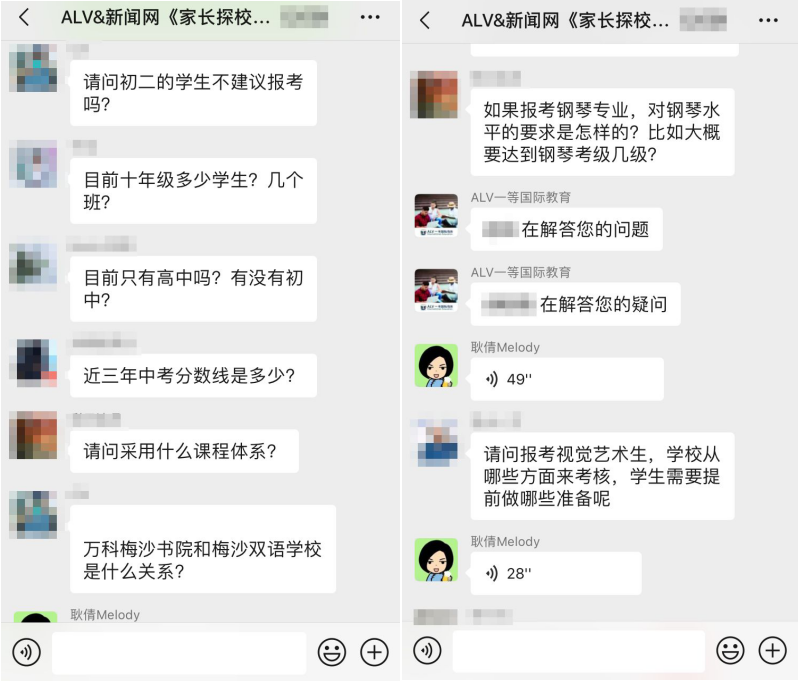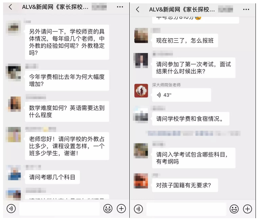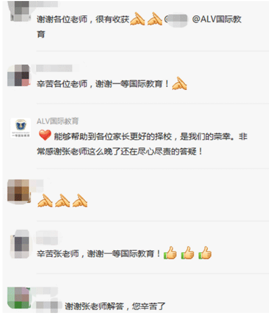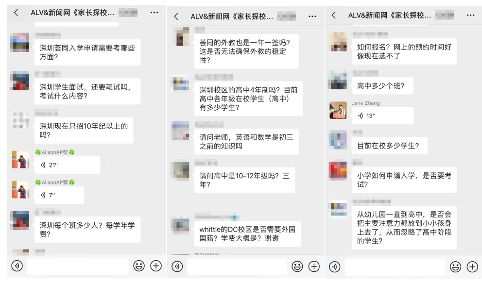 據(jù)介紹,在這三場探校活動中,招生官耐心而又細致的逐一為家長答疑解惑,贏得家長對本次活動的高度認可。以下為“家長探校團”微信群內(nèi)互動截圖: