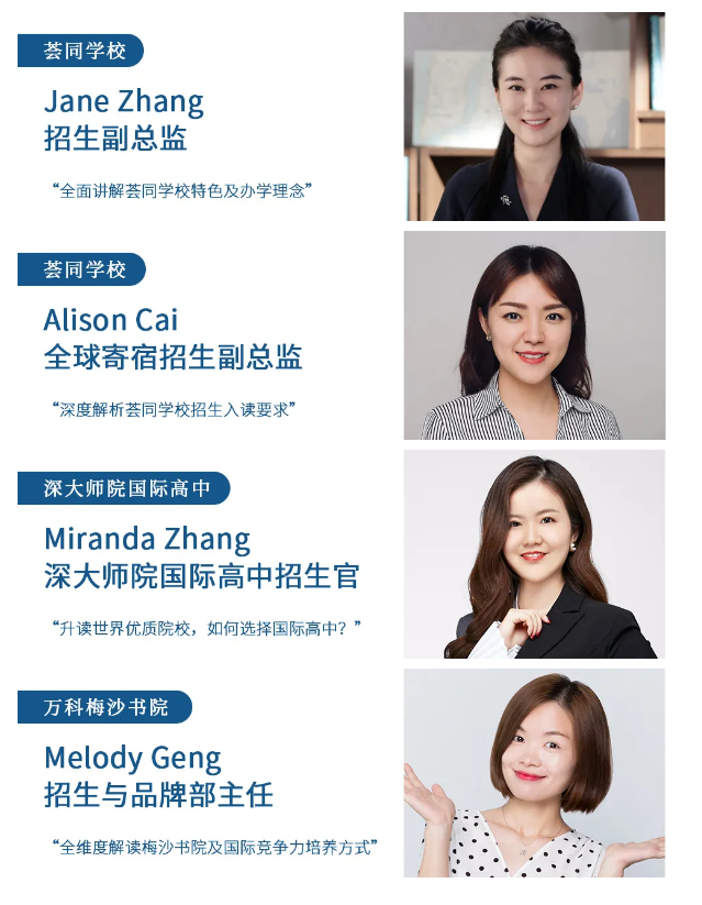 據(jù)悉,第一期線上探?;顒?,主辦方邀請了薈同學(xué)校、深大師院國際高中、萬科梅沙書院招生官,通過 ALV云學(xué)堂進行直播探校,為參加“家長探校團”活動的家長,提供第一手的學(xué)校資訊。