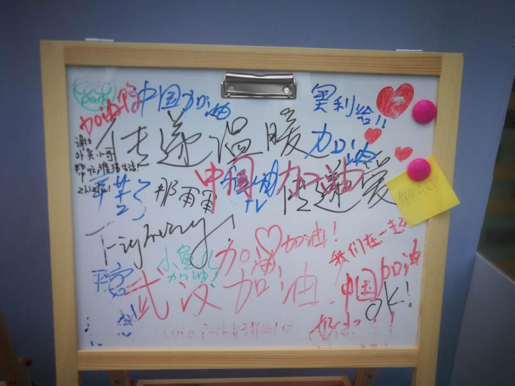 記者留意到,無(wú)人冰柜旁,一張碩大的告示牌上寫(xiě)著"無(wú)人冰柜接力,接力溫暖接力愛(ài)",告示牌的下方,還特意標(biāo)注"醫(yī)護(hù)人員、警察同志、義工同志、環(huán)衛(wèi)工人、快遞小哥、外賣(mài)小哥,你們辛苦了"的字樣。告示牌前,還架著兩塊白板,上面寫(xiě)滿了諸如"武漢加油""傳遞溫暖""一起看櫻花"等市民的真情告白。告示牌旁,擺放著二十幾箱晨光仙草涼粉,以及成箱的百歲山、農(nóng)夫山泉等品牌的礦泉水,冰柜里還有可口可樂(lè)以及一些涼茶飲料。柜體上,清晰地標(biāo)注了"免費(fèi)飲品,這里領(lǐng)取。"