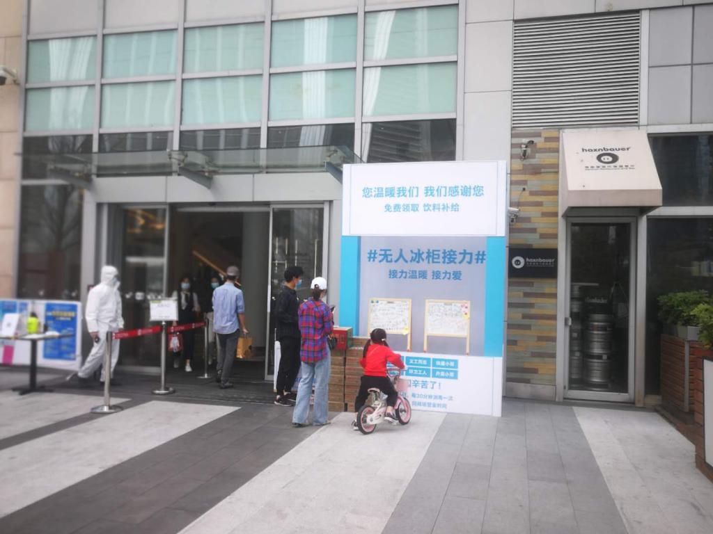 據(jù) COCO PARK工作人員介紹,無(wú)人冰柜是本周初由商場(chǎng)提供并擺放在東門(mén)口的,初衷就是讓上述這些群體能適當(dāng)補(bǔ)充體力并感受這座城市的溫暖。