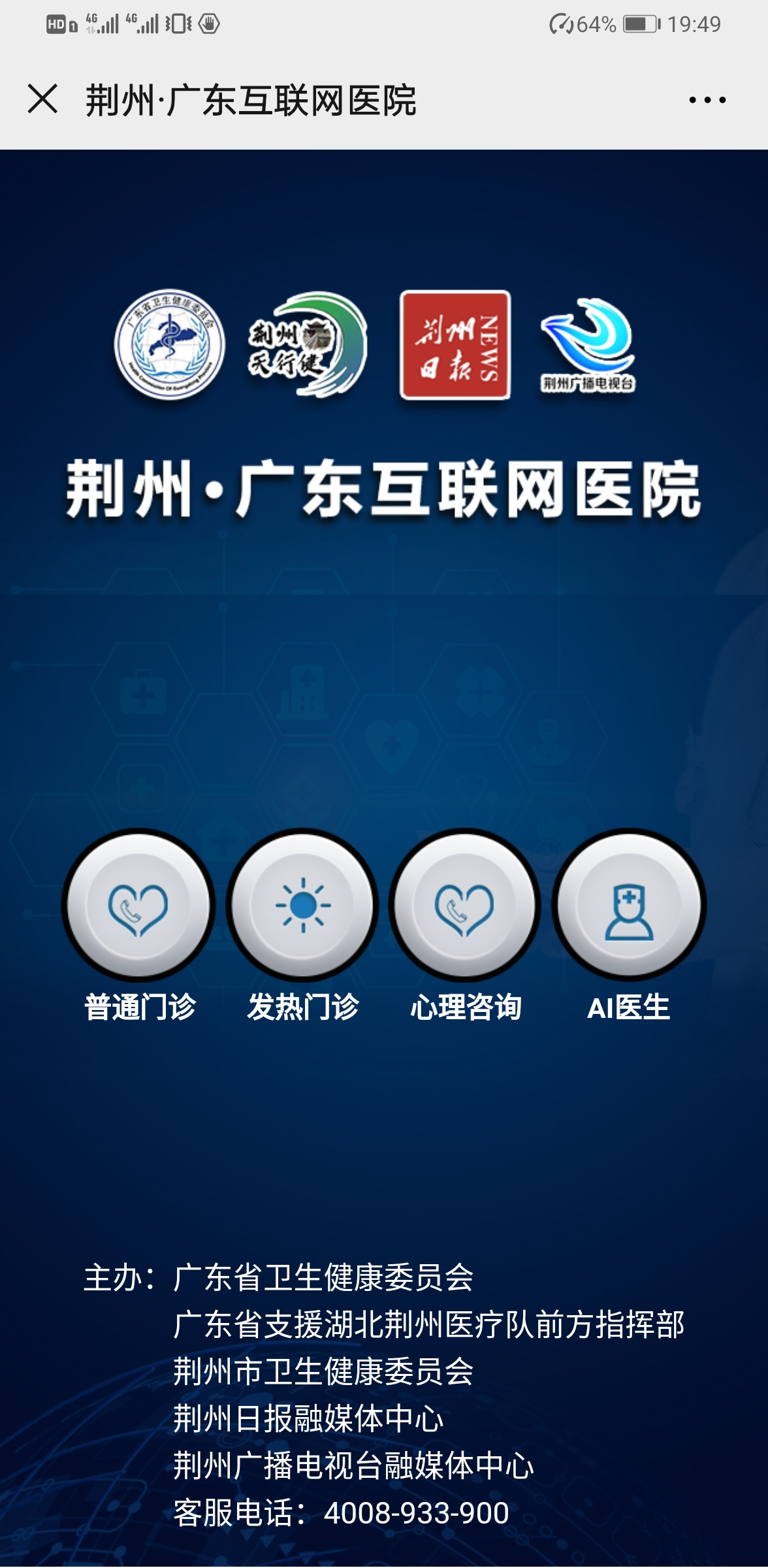 這家互聯(lián)網(wǎng)醫(yī)院是由廣東省衛(wèi)生健康委和廣東支援湖北荊州醫(yī)療隊(duì)前方指揮部聯(lián)合,在充分研判荊州疫情防控形勢的基礎(chǔ)上組建的網(wǎng)上醫(yī)療隊(duì),實(shí)現(xiàn)荊州市民足不出戶,即可享受后方優(yōu)質(zhì)的線上服務(wù)資源,為前方“主戰(zhàn)場”減負(fù)。