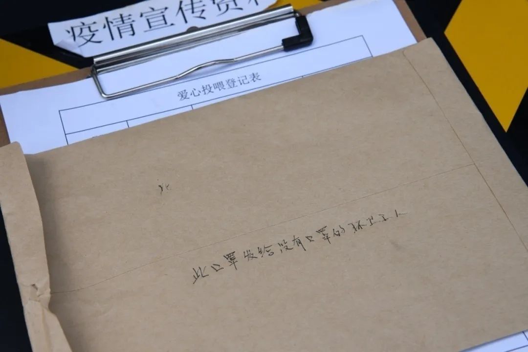 一位市民送來口罩,信封上寫著“此口罩發(fā)給沒有口罩的環(huán)衛(wèi)工人”。