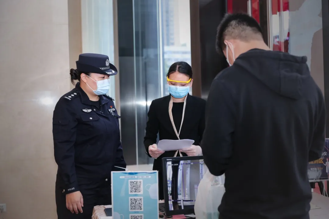 梅林店鋪約3000余家,隨著復(fù)工企業(yè)越來越多,防控工作也面臨不小挑戰(zhàn)。卓悅匯商鋪多、人流大,民警聯(lián)合街道、工作站、安監(jiān)等部門防疫檢查時(shí),發(fā)現(xiàn)商場(chǎng)使用手持測(cè)溫儀,效率不高,易造成排隊(duì)聚集。為解決這個(gè)難題,田晶瑩多方奔走,聯(lián)合社區(qū)民警與商場(chǎng)負(fù)責(zé)人多次溝通。